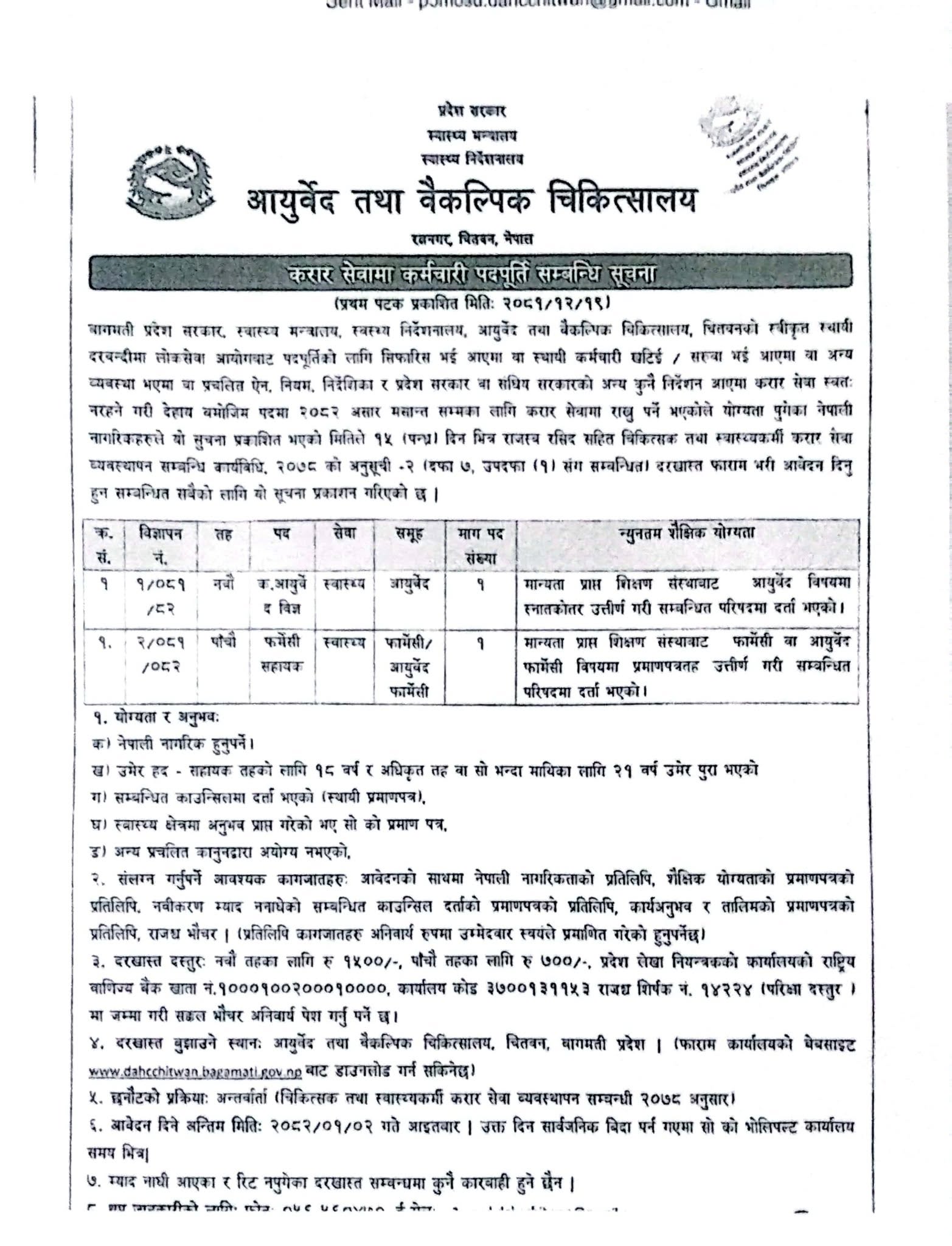 Vacancy Announcement at Ayurved and Alternative Hospital, Chitwan