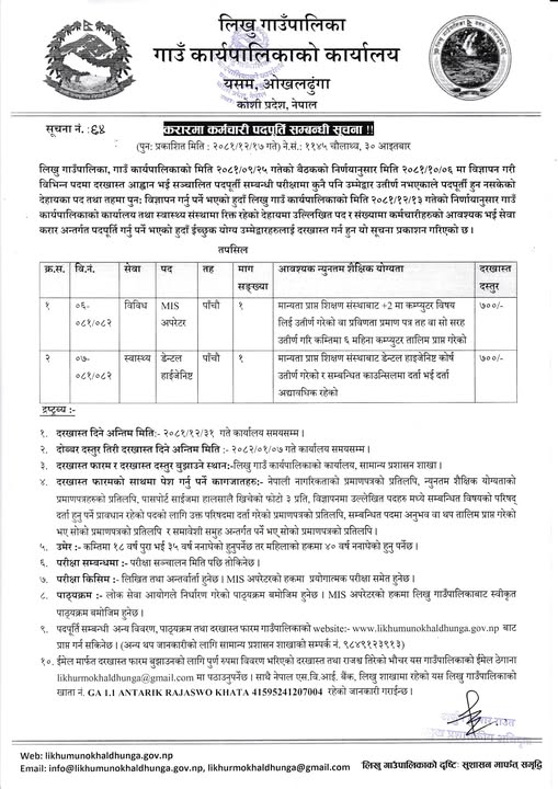Vacancy Announcement at Likhu Rural Municipality, Okhaldhunga