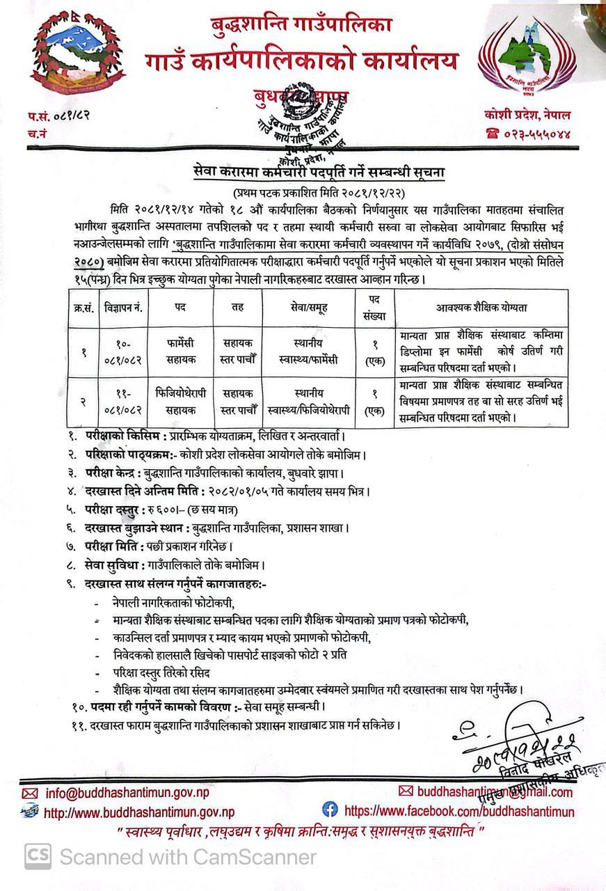 बुद्धशान्ति गाउँपालिकामा कर्मचारी आवश्यकता सम्बन्धी सूचना