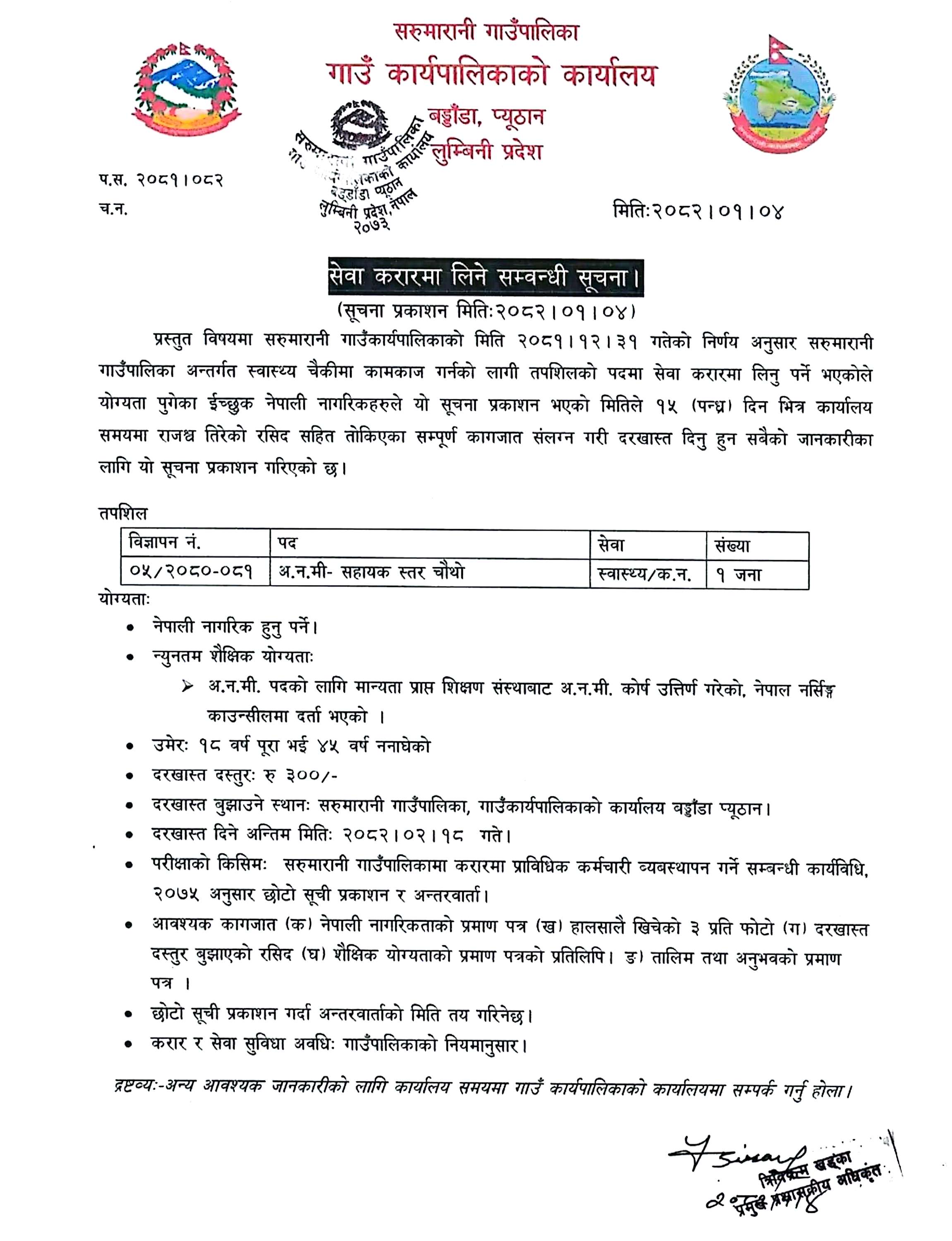अ.न.मी सहायक स्तर चौथो पदको लागि सेवा करारमा लिने सम्बन्धी सूचना