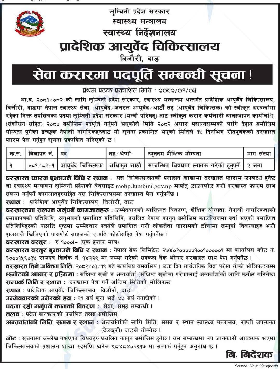 प्रादेशिक आयुर्वेद चिकित्सालय दाङमा आयुर्वेद चिकित्सक आवश्यकता सम्बन्धी सूचना