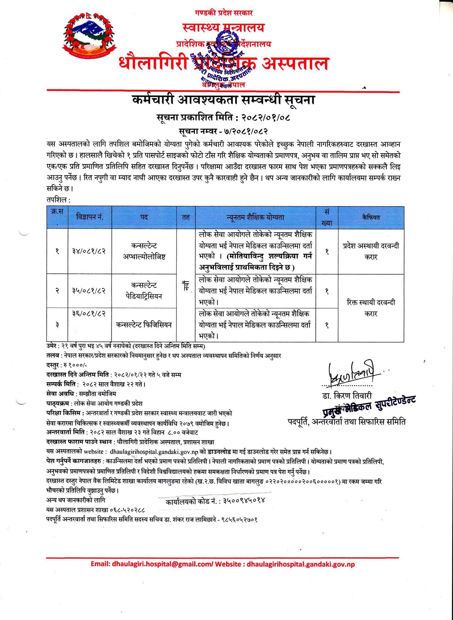 धौलागिरी प्रादेशिक अस्पतालमा कर्मचारी आवश्यकता
