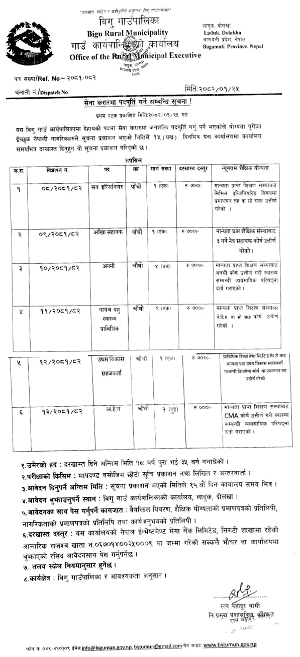 विगु गाउँपालिका दोलखामा कर्मचारी आवश्यकता