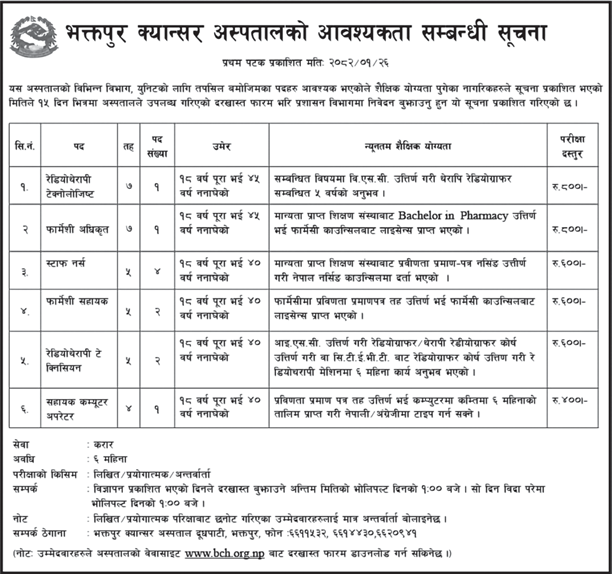 भक्तपुर क्यान्सर अस्पतालमा कर्मचारी आवश्यकता