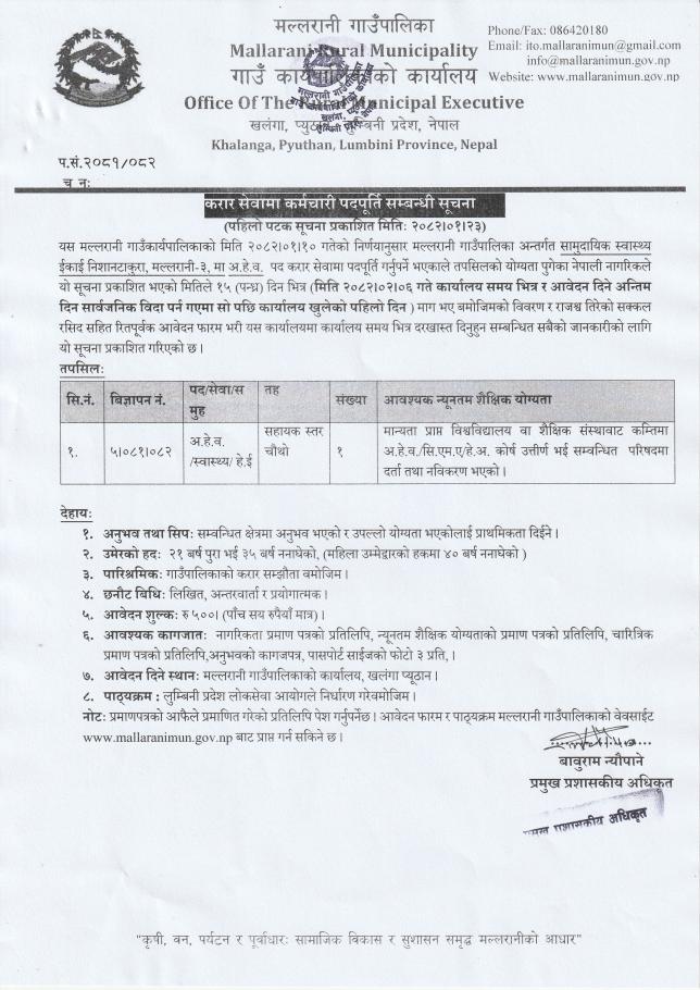 मल्लरानी गाउँपालिकामा अ.हे.व. आवश्यकता