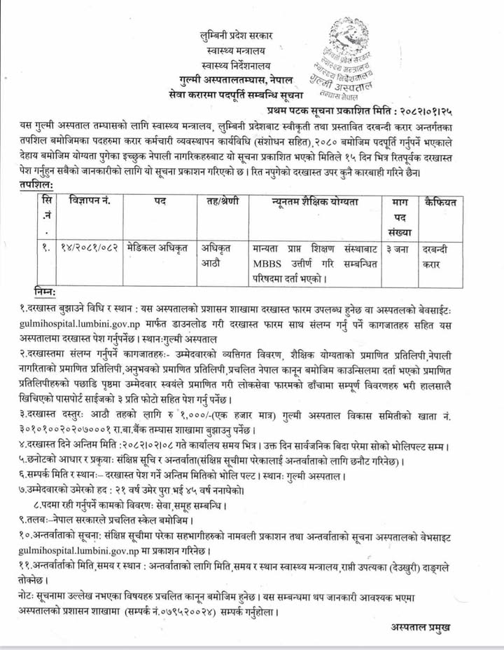 गुल्मी अस्पतालमा मेडिकल अधिकृत आवश्यकता सम्बन्धी सूचना