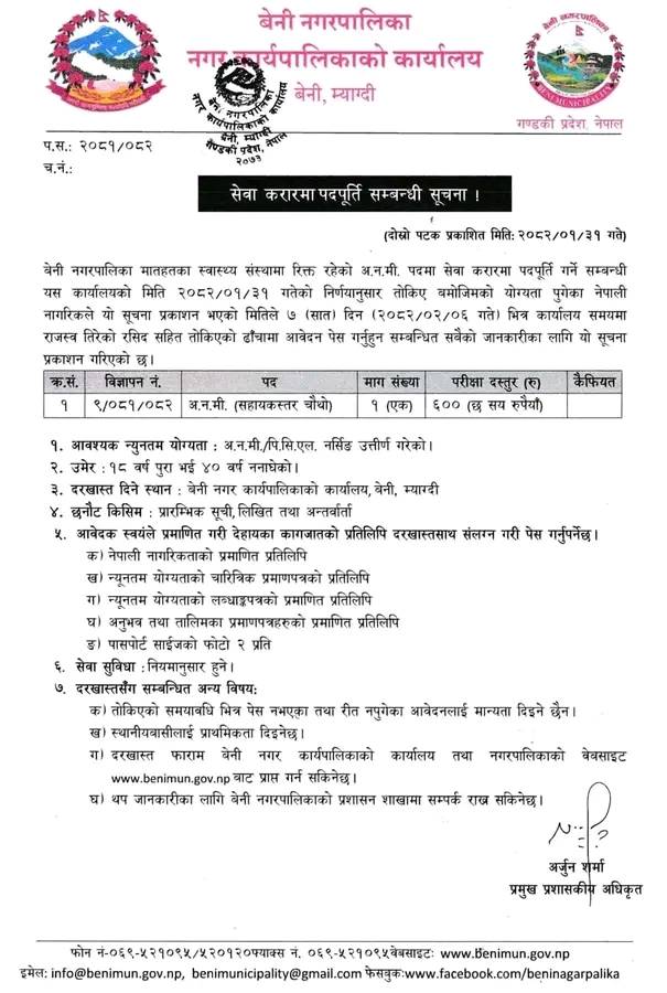बेनी नगपालिका अ.न.मी. आवश्यकता