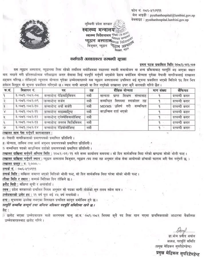 प्यूठान अस्पतालमा चिकित्सक आवश्यकता सम्बन्धी सूचना