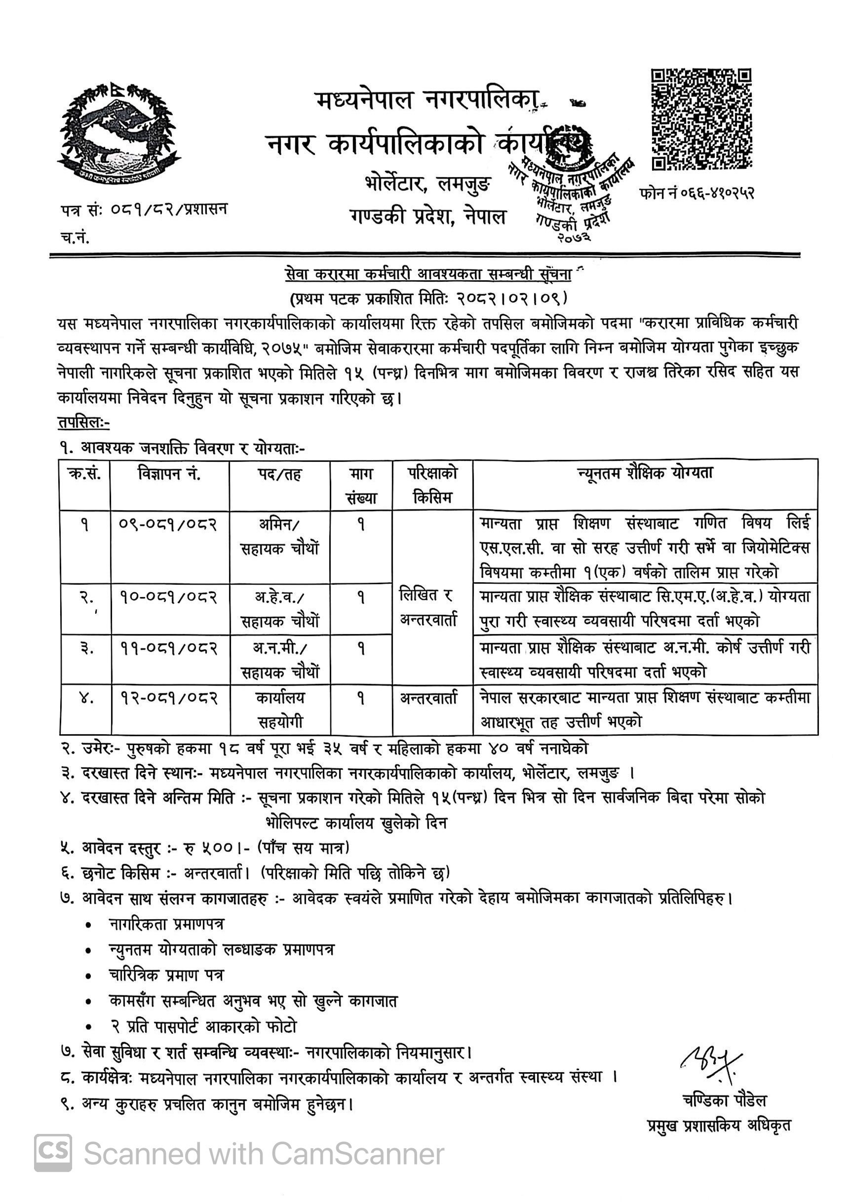 Madhyanepal Municipality Lamjung Vacancies for Various Posts