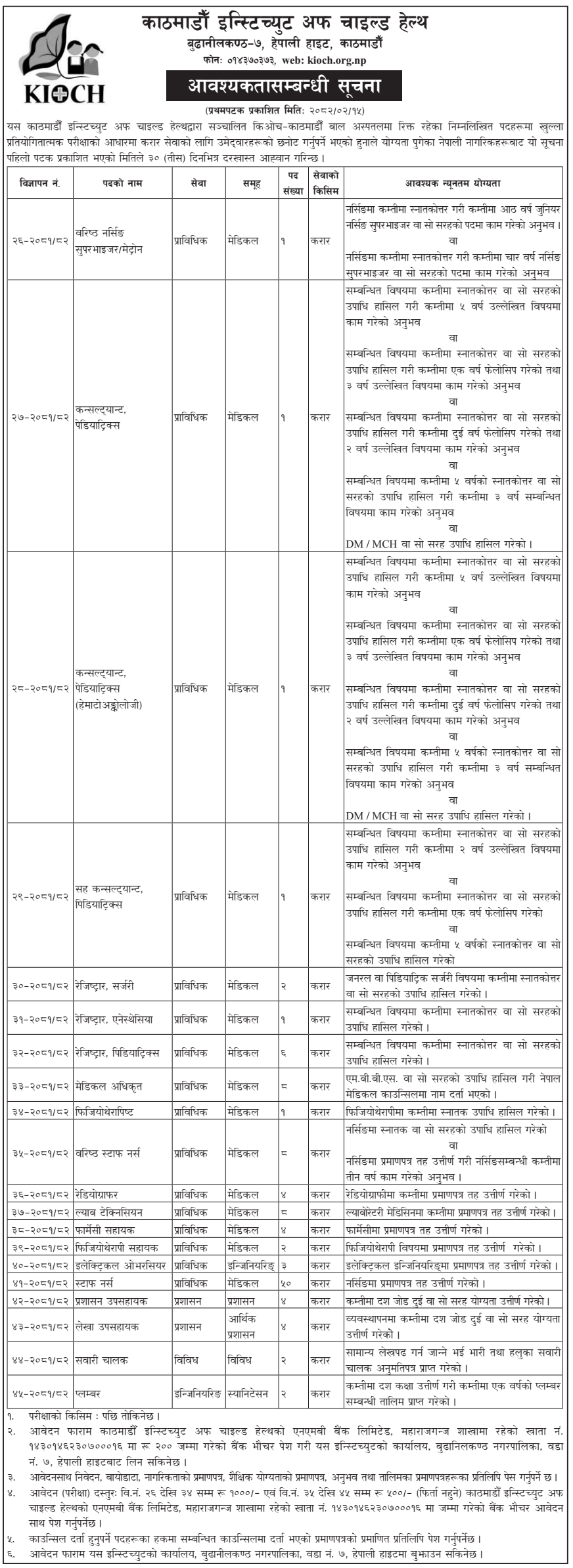 Kathmandu Institute of Child Health Job Vacancy Notice