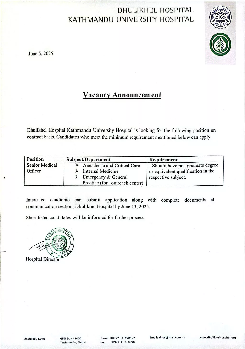 Dhulikhel Hospital Vacancies for the Post of Senior Medical Officer