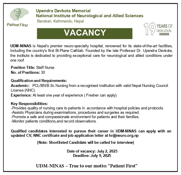Upendra Devkota Memorial National Institute of Neurological and Allied Sciences Vacnacy for Staff Nurse