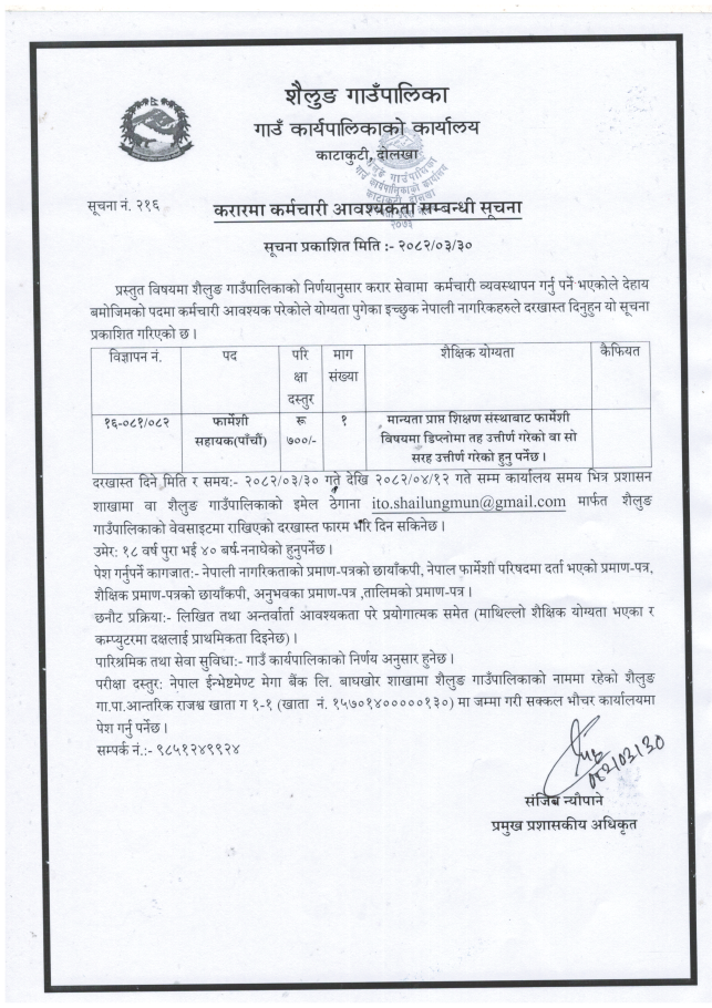 शैलुङ गाउँपालिकामा फार्मेशी सहायक आवश्यकता सम्बन्धी सूचना