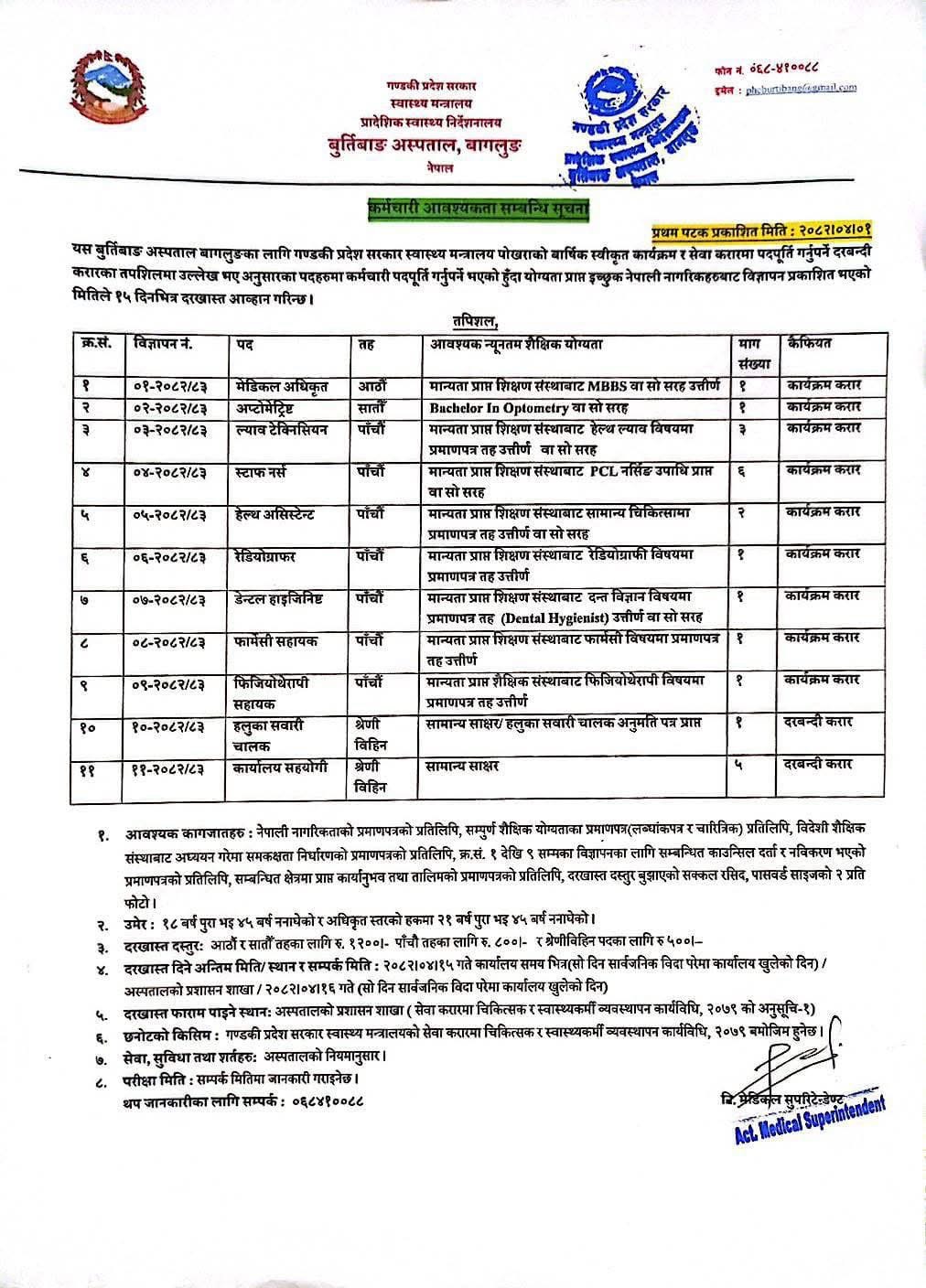 बुर्तिबाङ अस्पताल, बागलुङमा कर्मचारी आवश्यकता सम्बन्धी सूचना