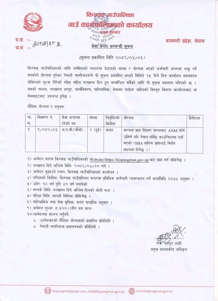 किस्पाङ गाउँपालिकामा अ.न.मी आवश्यकता सम्बन्धी सूचना