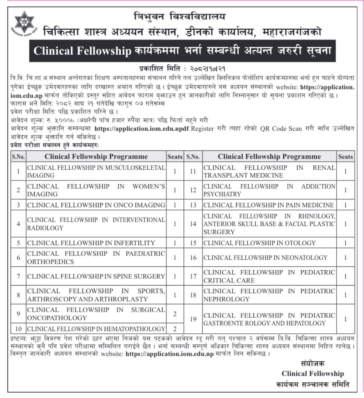 Source/Reference: IOM Clinical Fellowship Application Announcement