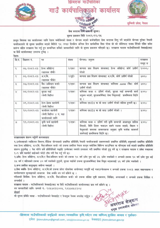 Jhimruk Rural Municipality Vacancies for HA, ANM and Vaidya