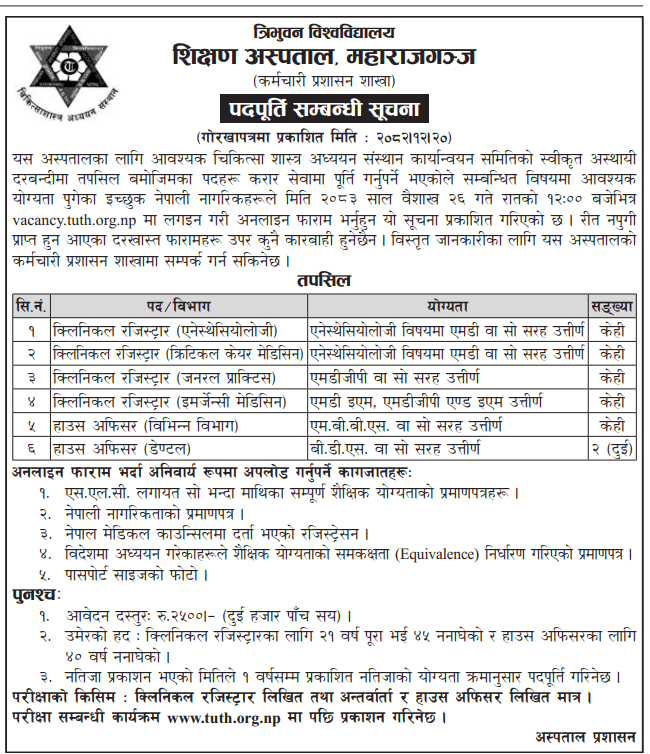 TU Teaching Hospital Vacancies for Various Posts
