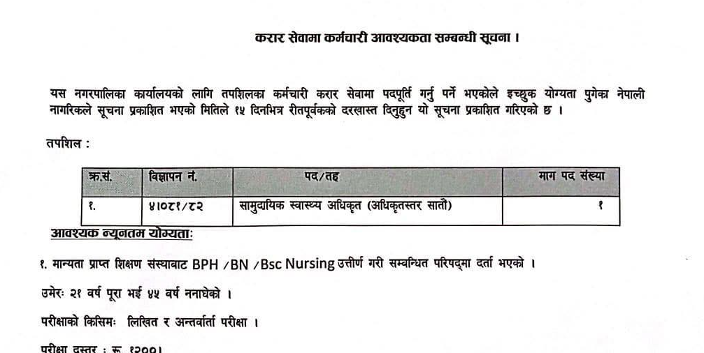 मंगलसेन नगरपालिका अछाममा कर्मचारी आवश्यकता सम्बन्धी सूचना