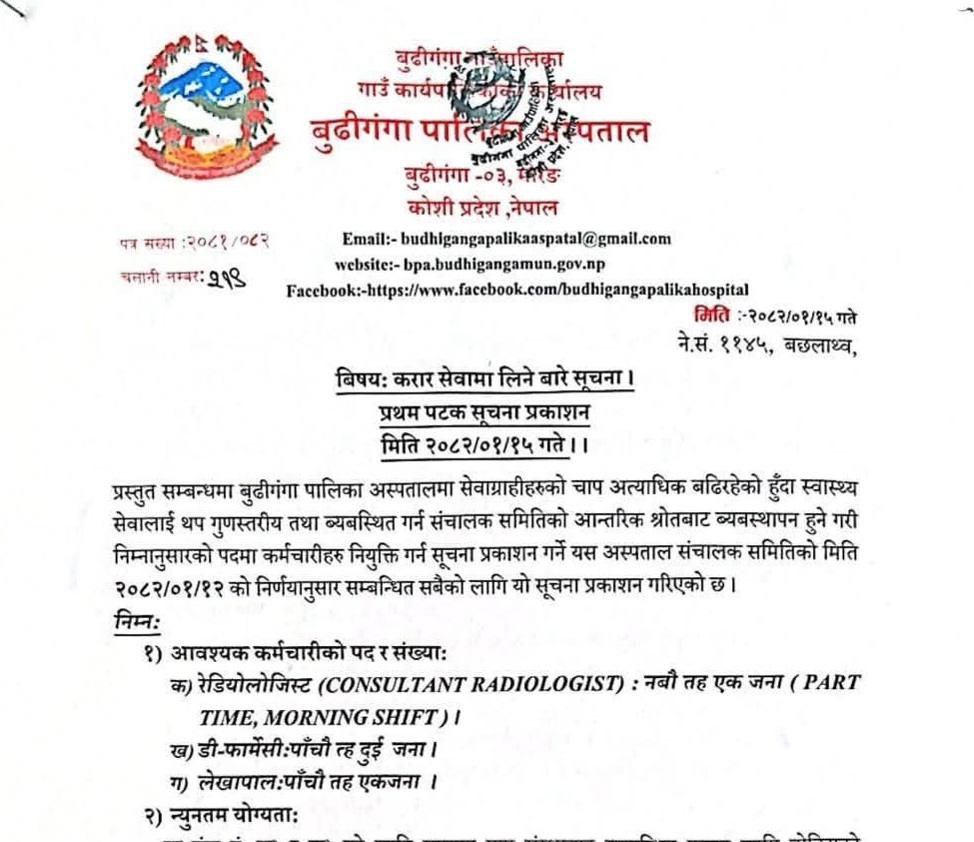 Budhiganga Rural Municipality Vacancy for Various Positions
