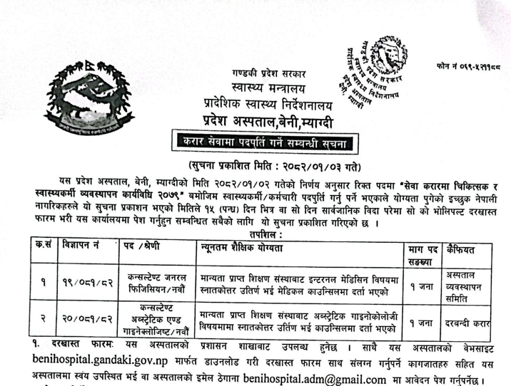 Vacancy Announcement at Province Hospital Beni Myagdi