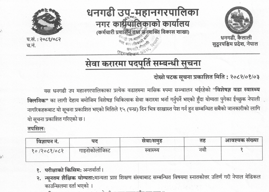 सेवा करारमा गाइनोकोलोजिस्ट आवश्यकता सम्बन्धी सूचना