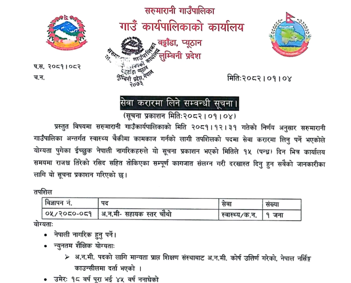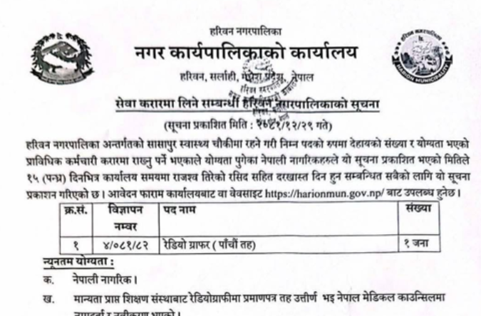 हरिहरपुरगढी गाउँपालिकामा कर्मचारी आवश्यकता सम्बन्धी सूचना