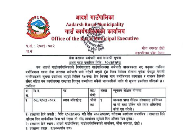 आदर्श गाउँपालिका डोटीमा ल्याब असिष्टेण्ट आवश्यकता