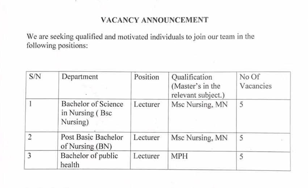 Vacancy Announcement for the various Post at Oasis Medical College Teaching Hospital and Research Centre Pvt. Ltd.