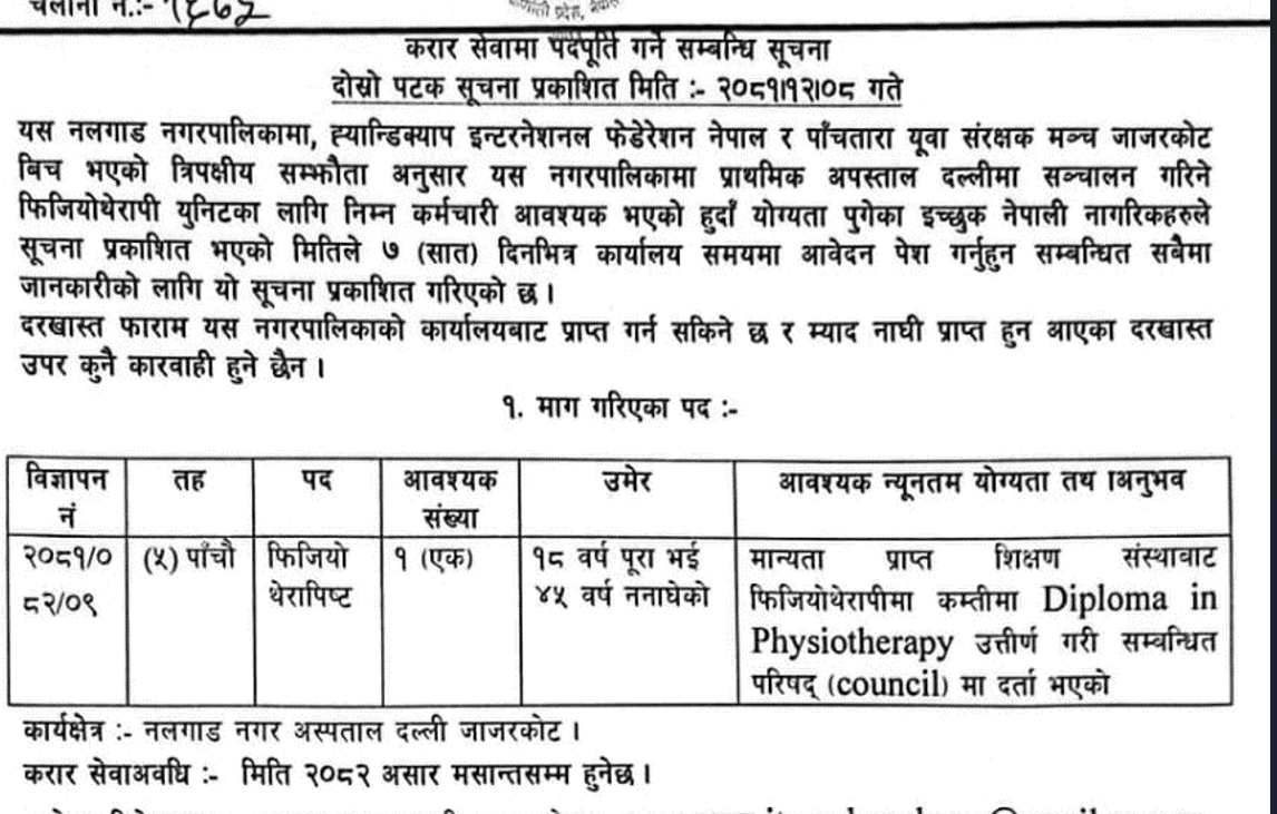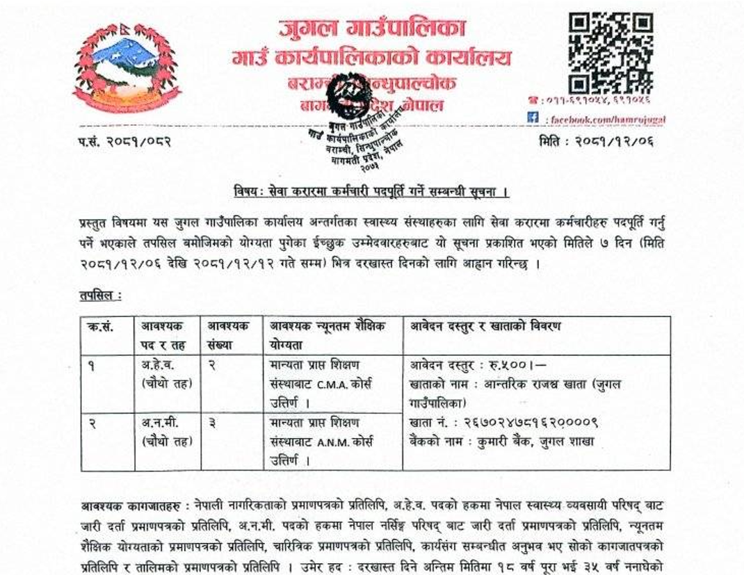 जुगल गाउँपालिकामा अ.हे.व./अ.न.मी. आवश्यकता सम्बन्धी सूचना