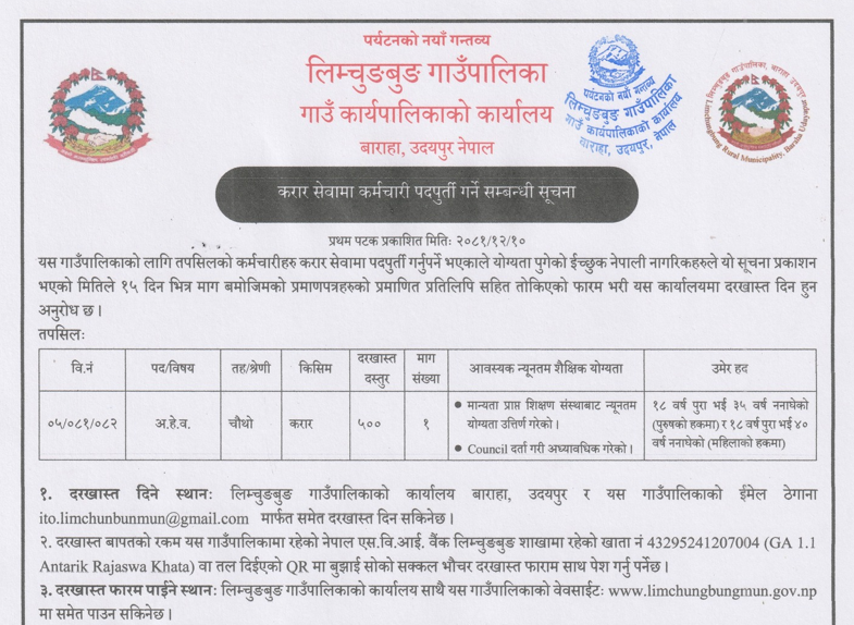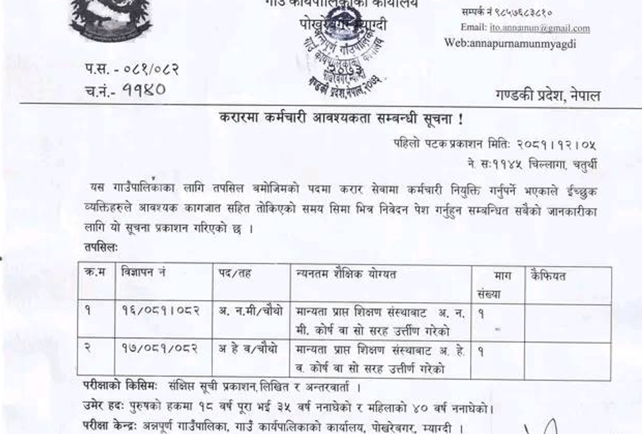 अन्नपूर्ण गाउँपालिकामा कर्मचारी आवश्यकता सम्बन्धी सूचना