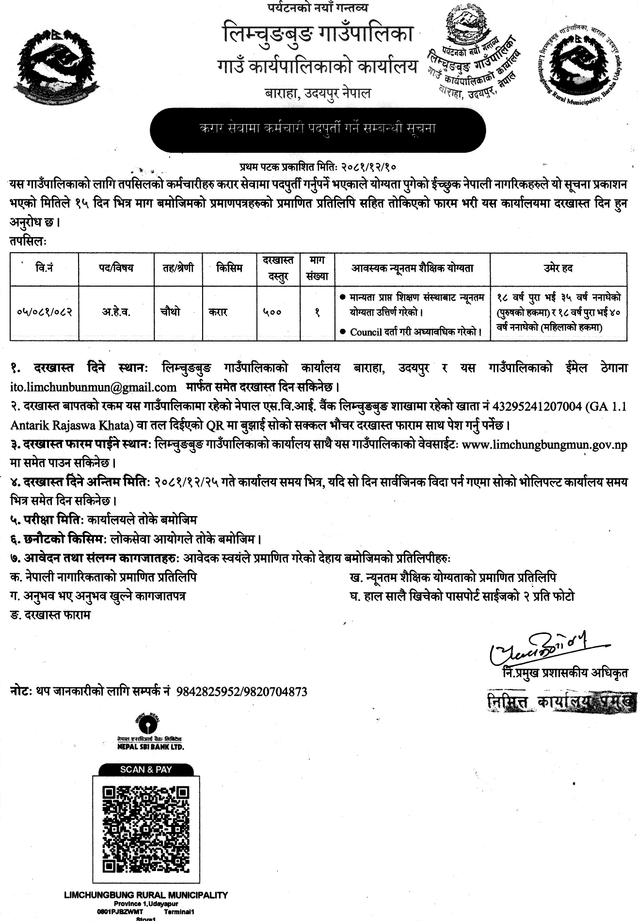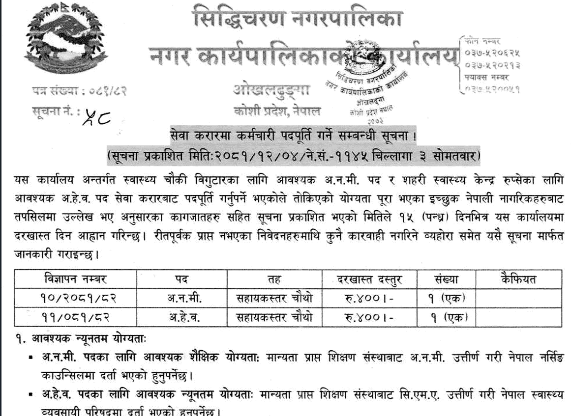 सिद्धिचरण नगरपालिका ओखलढुंगामा कर्मचारी आवश्यकता