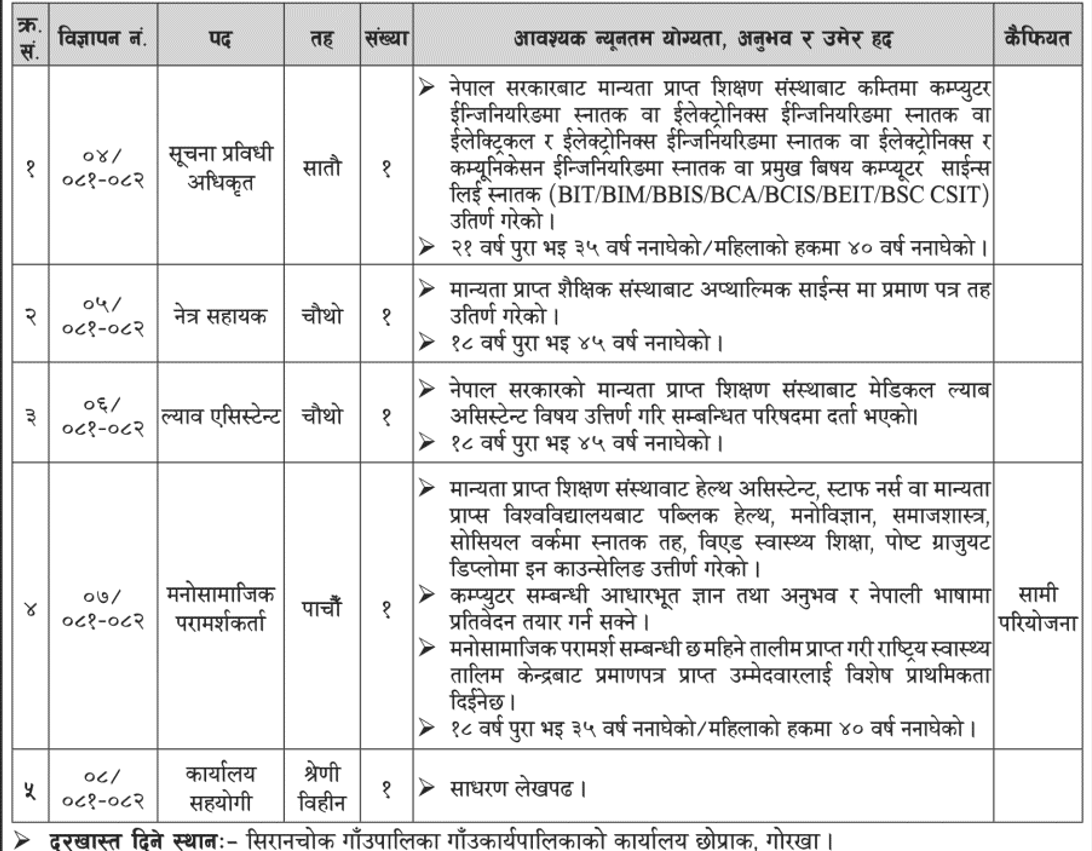 Siranchowk Rural Municipality Vacancy for Various Positions