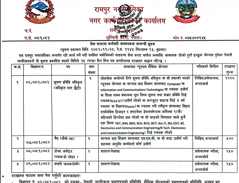 रामपुर नगरपालिका पाल्पामा करार सेवामा कर्मचारी आवश्यकता सम्बन्धी सूचना