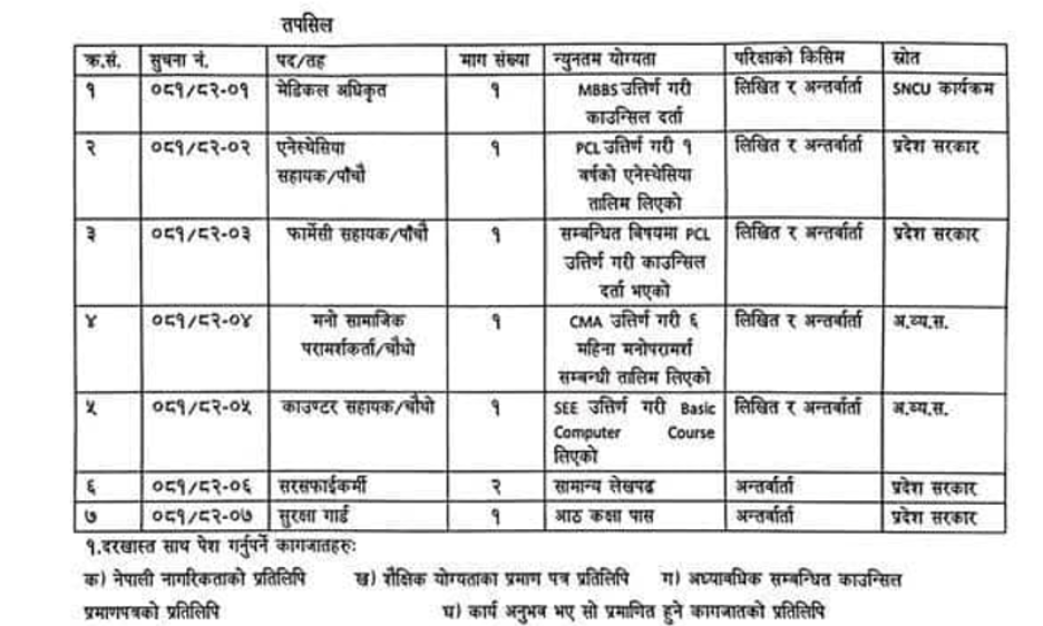 जिल्ला अस्पताल अछाममा करार सेवामा कर्मचारी चिकित्सक तथा स्वास्थ्यकर्मी आवश्यकता सम्बन्धी सूचना