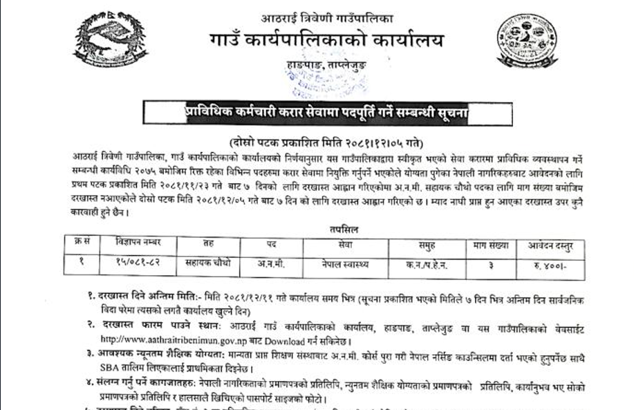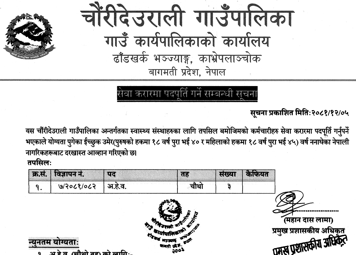 Chaurideurali Rural Municipality Vacancy for AHW 2081-12-05