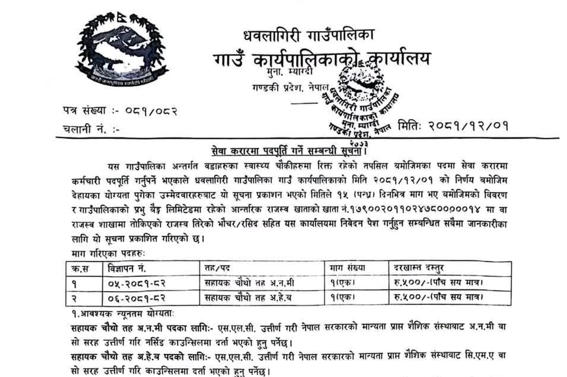धवलागिरी गाउँपालिकामा अ.ह.व./अ.न.मी. आवश्यकता सम्बन्धी सूचना