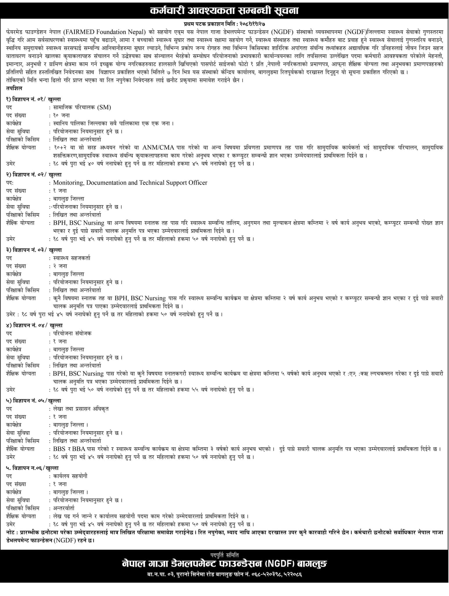 NGDF मा कर्मचारी आवश्यकता सम्बन्धी सूचना