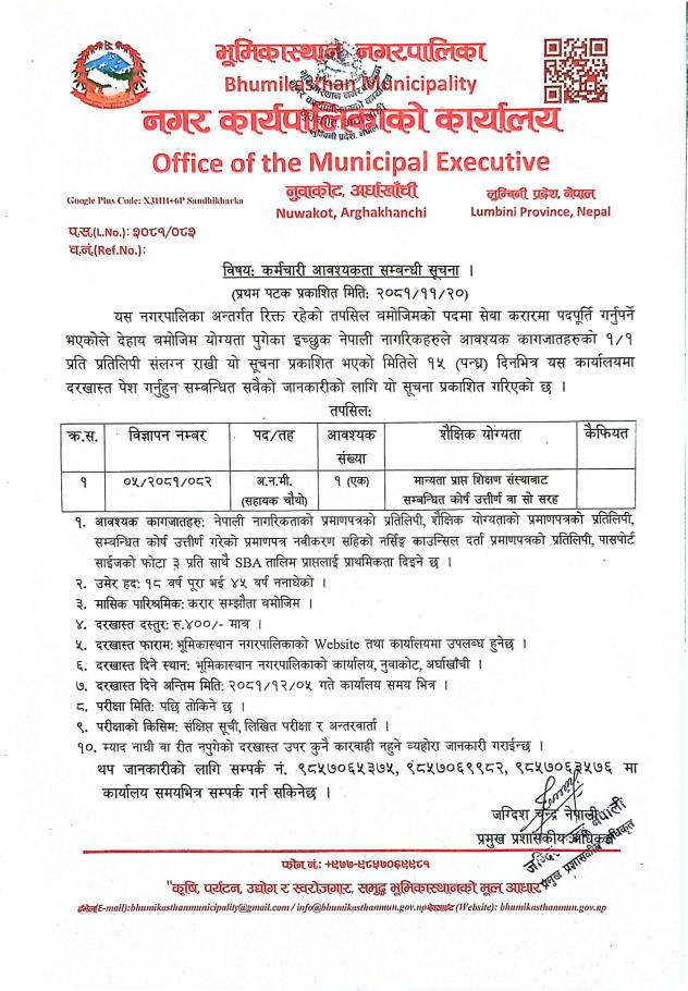 भूमिकास्थान नगरपालिकामा अ.न.मी. आवश्यकता सम्बन्धी सूचना