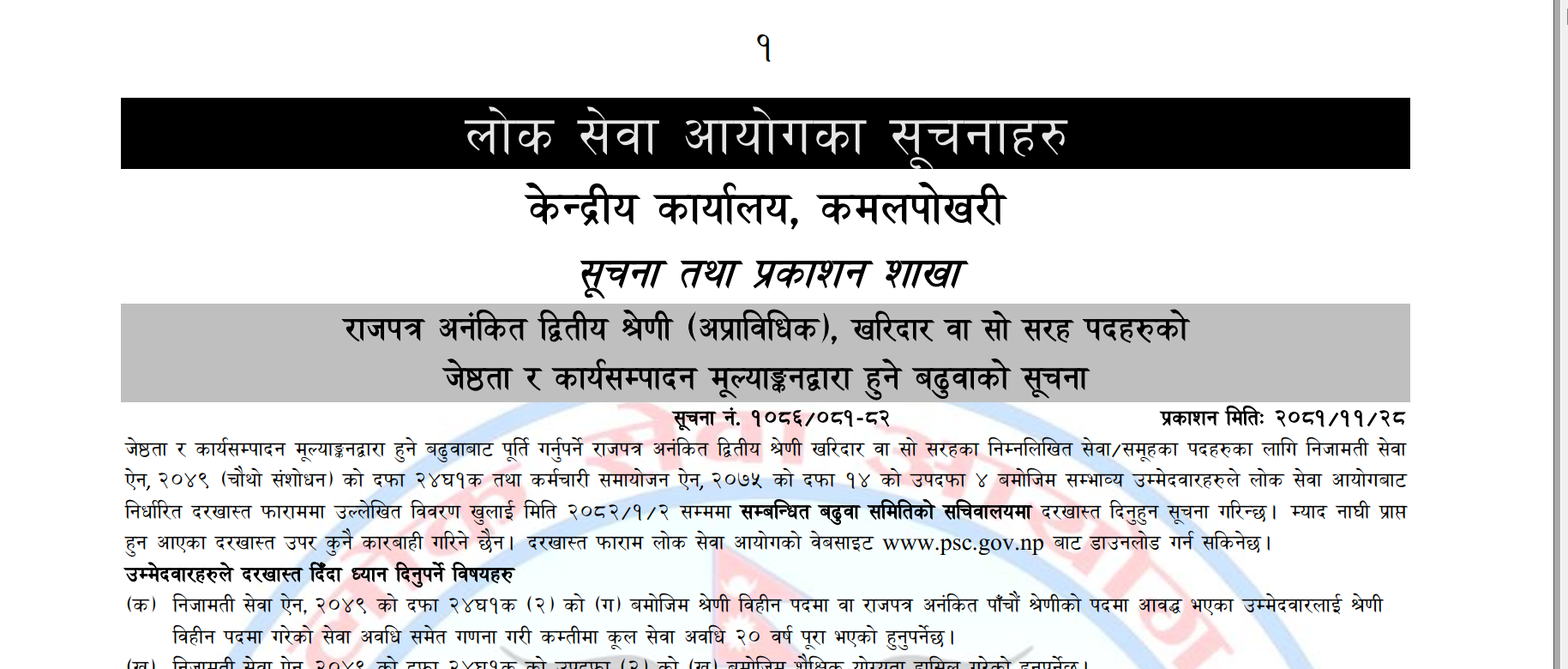 निजामती र संघीय संसद सेवाका रा.प.अनं. द्वितीय श्रेणी (अप्राविधिक), खरिदार वा सो सरह पदको विज्ञापन