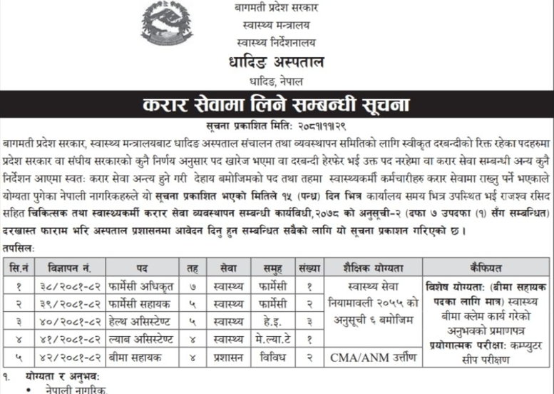 धादिङ अस्पतालमा कर्मचारी आवश्यकता सम्बन्धी सूचना