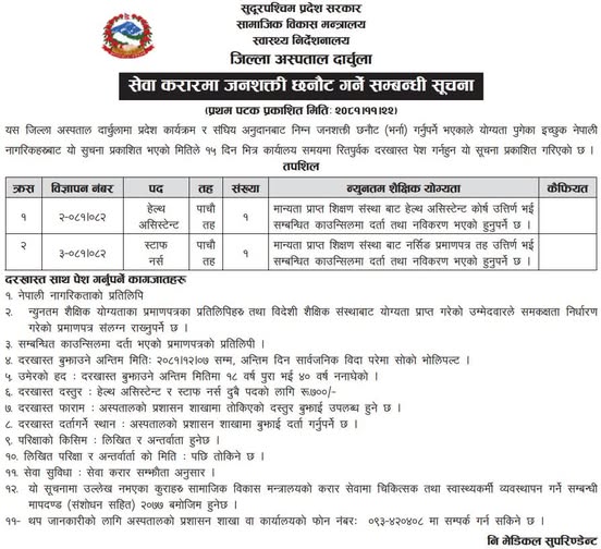 जिल्ला अस्पताल दार्चुलामा कर्मचारी आवश्यकता सम्बन्धी सूचना