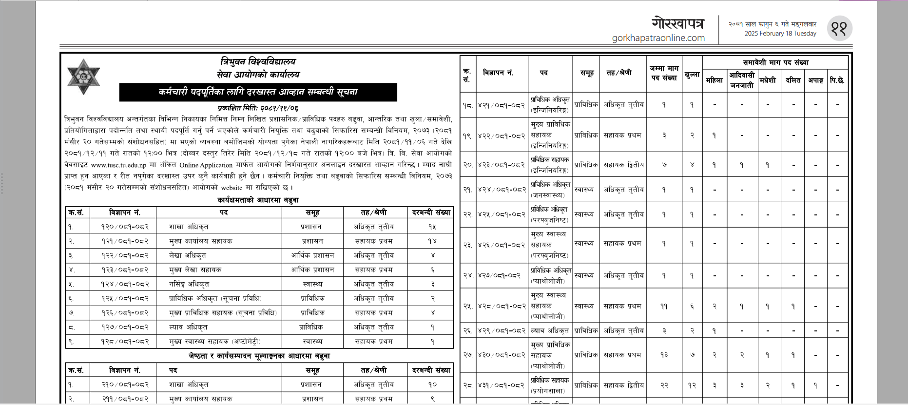 Vacancy Announcement at TU Service Commission
