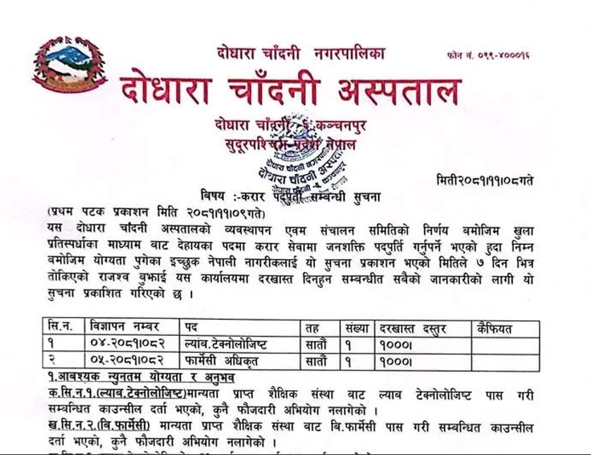 दोधारा चाँदनी अस्पतालमा कर्मचारी आवश्यकता