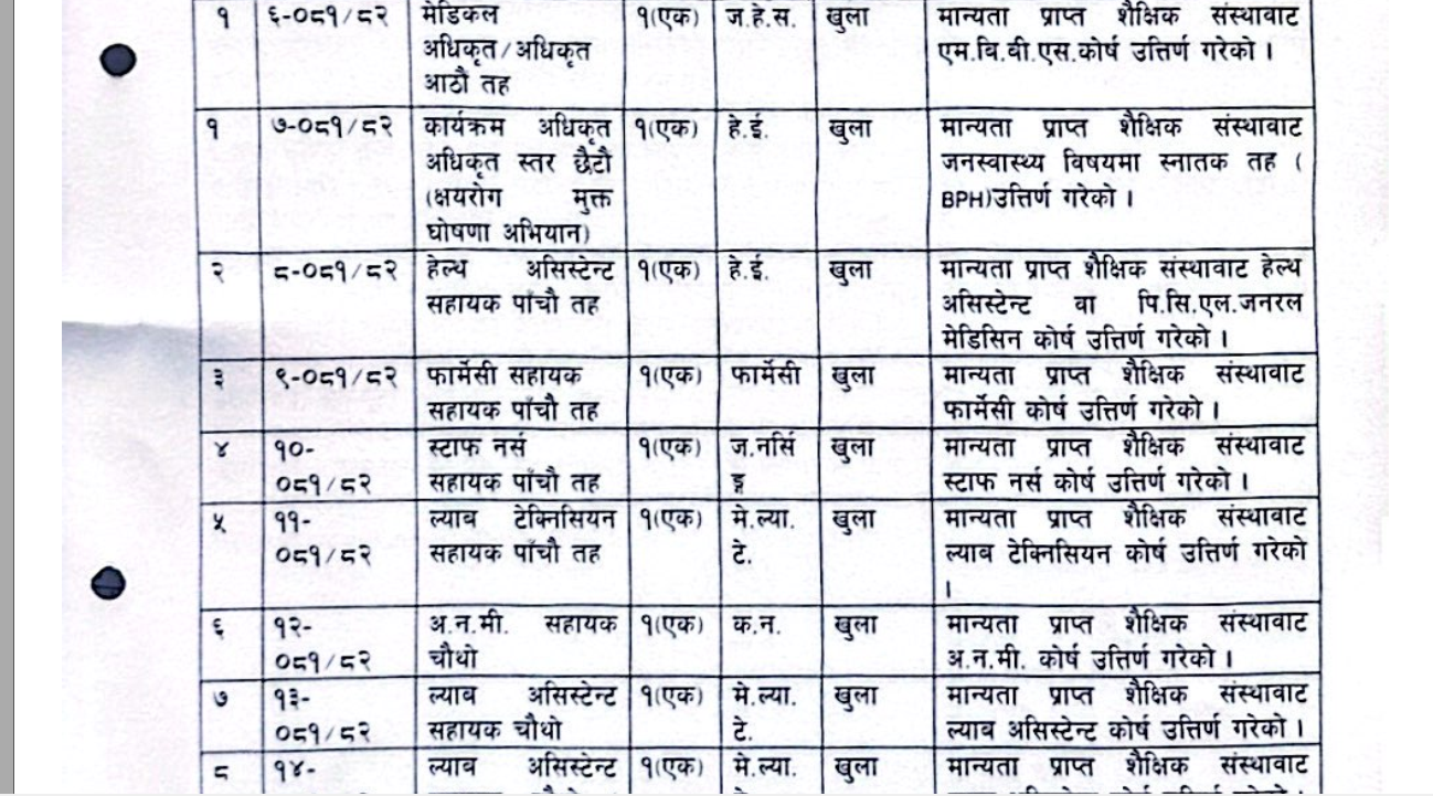 Federal and Provincial Routine of Health (Technical) Loksewa Vacancy