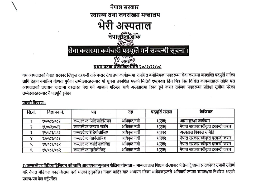 भेरी अस्पतालमा चिकित्सक आवश्यकता सम्बन्धी सूचना