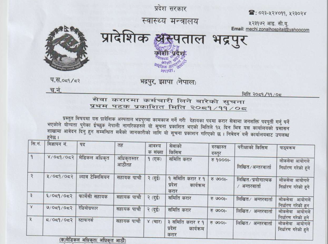 भद्रपुर अस्पताल झापामा कर्मचारी आवश्यकता सम्बन्धी सूचना !