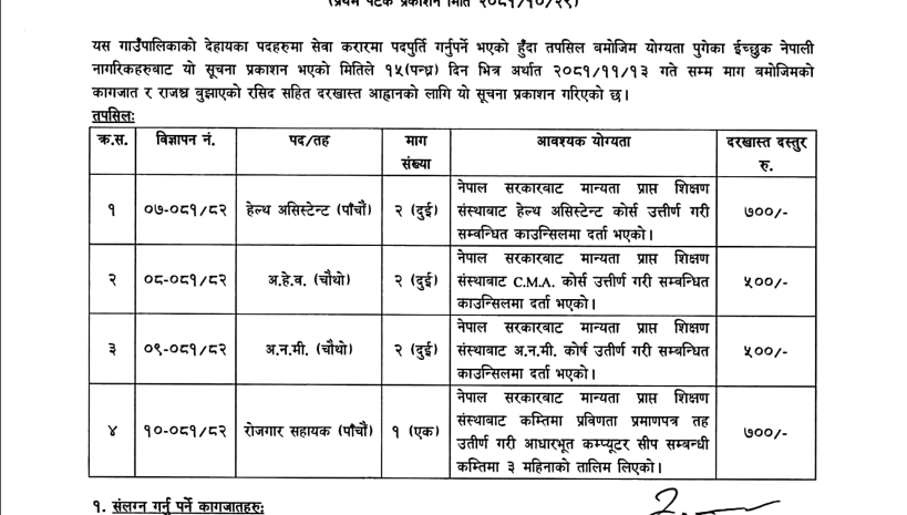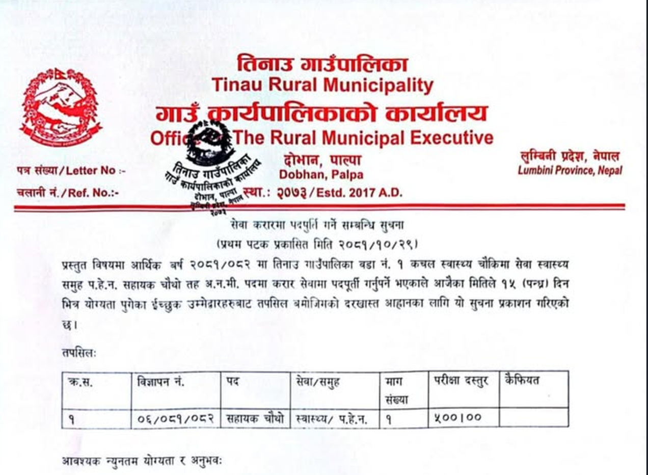 हेलम्बु गाउँपालिकामा स्वास्थ्यकर्मी आवश्यकता सम्बन्धी सूचना
