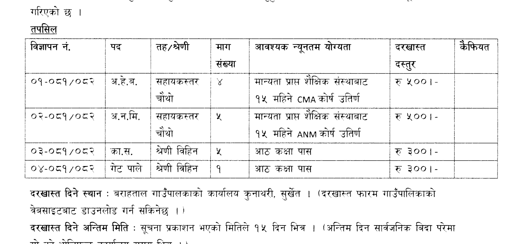 बराहताल गाउँपालिका सुर्खेतमा कर्मचारी आवश्यकता सम्बन्धी सूचना