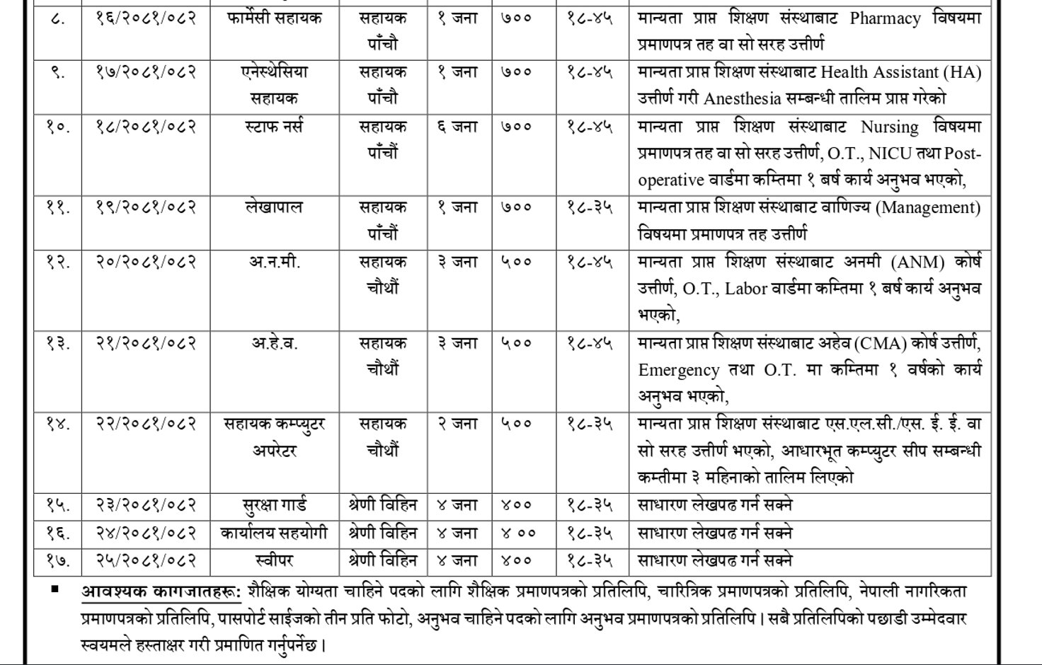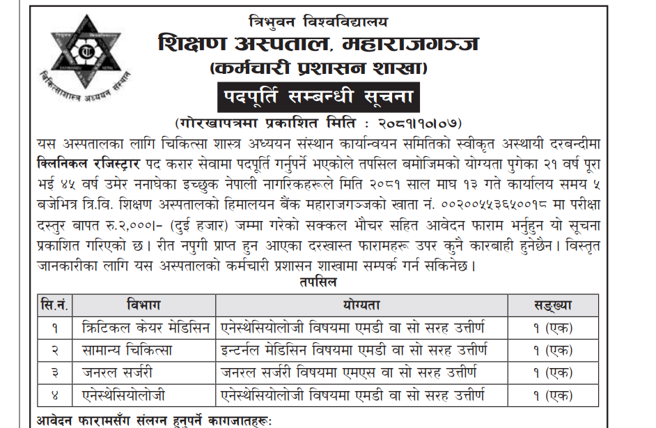शिक्षण अस्पताल, महाराजगञ्जको पदपूर्ति सम्बन्धी सूचना